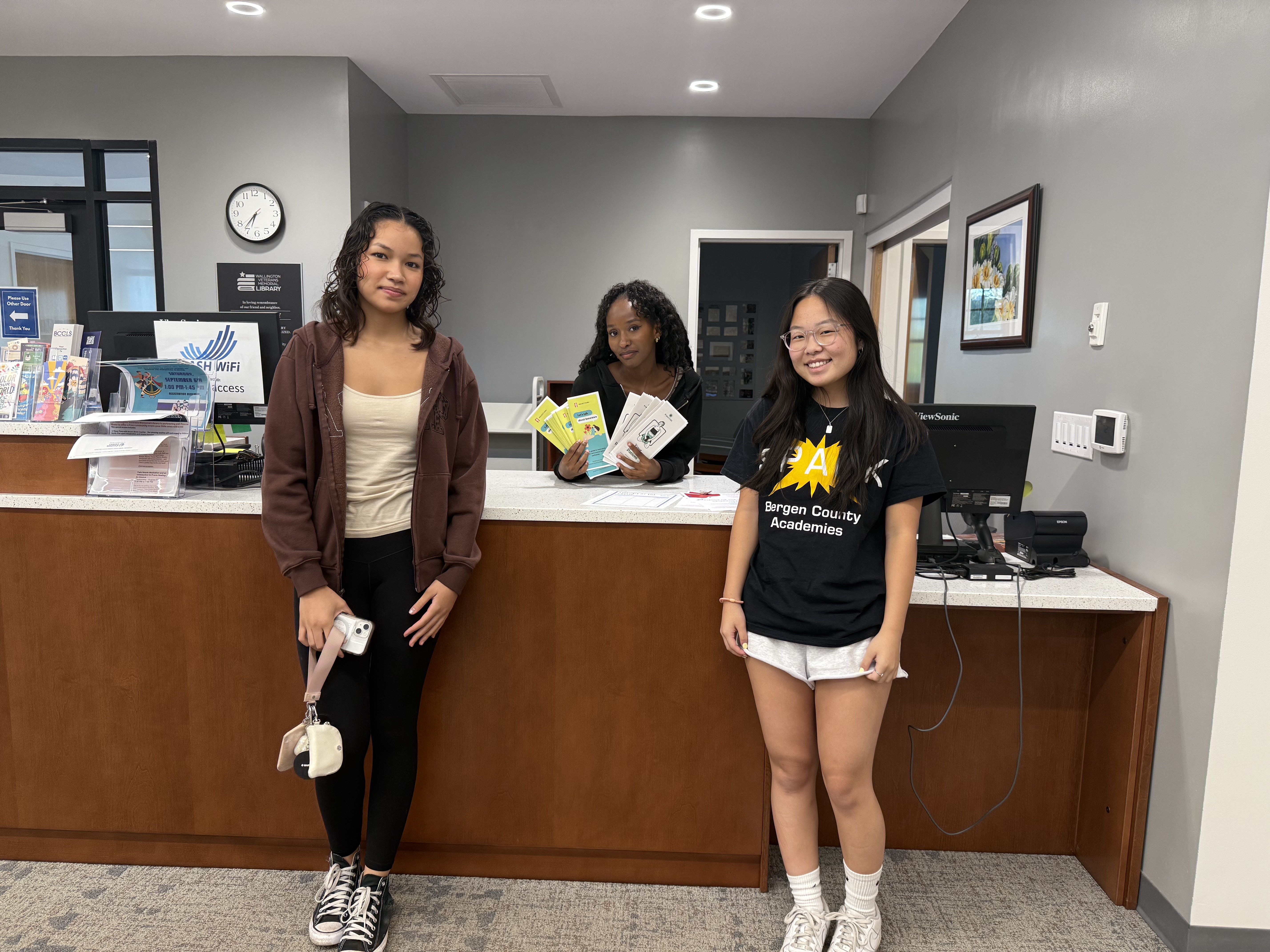 Hasbrouck Heights Library is home to our very own board member, Clara! The HH Library displayed our pamphlets and discussed the importance of our missions with us. From the moment we walked in, we could tell this library was a great home for our pamphlets — the staff, atmosphere, and interior were beyond amazing.
